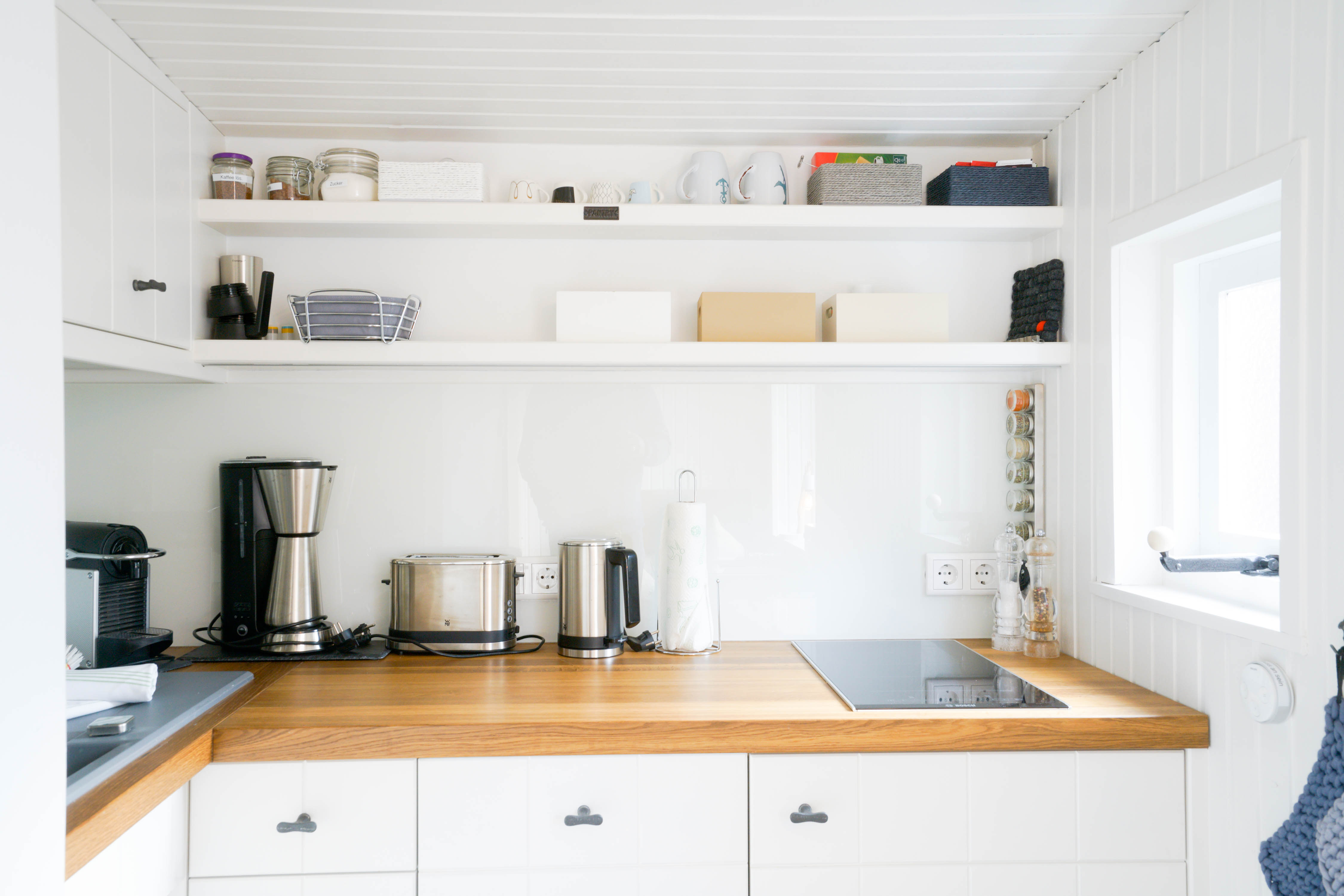- separate Küche ausgestattet mit Induktionsherd, kleinem Backofen, Geschirrspülmaschine und div. Elektrogeräten, kleine Essecke
